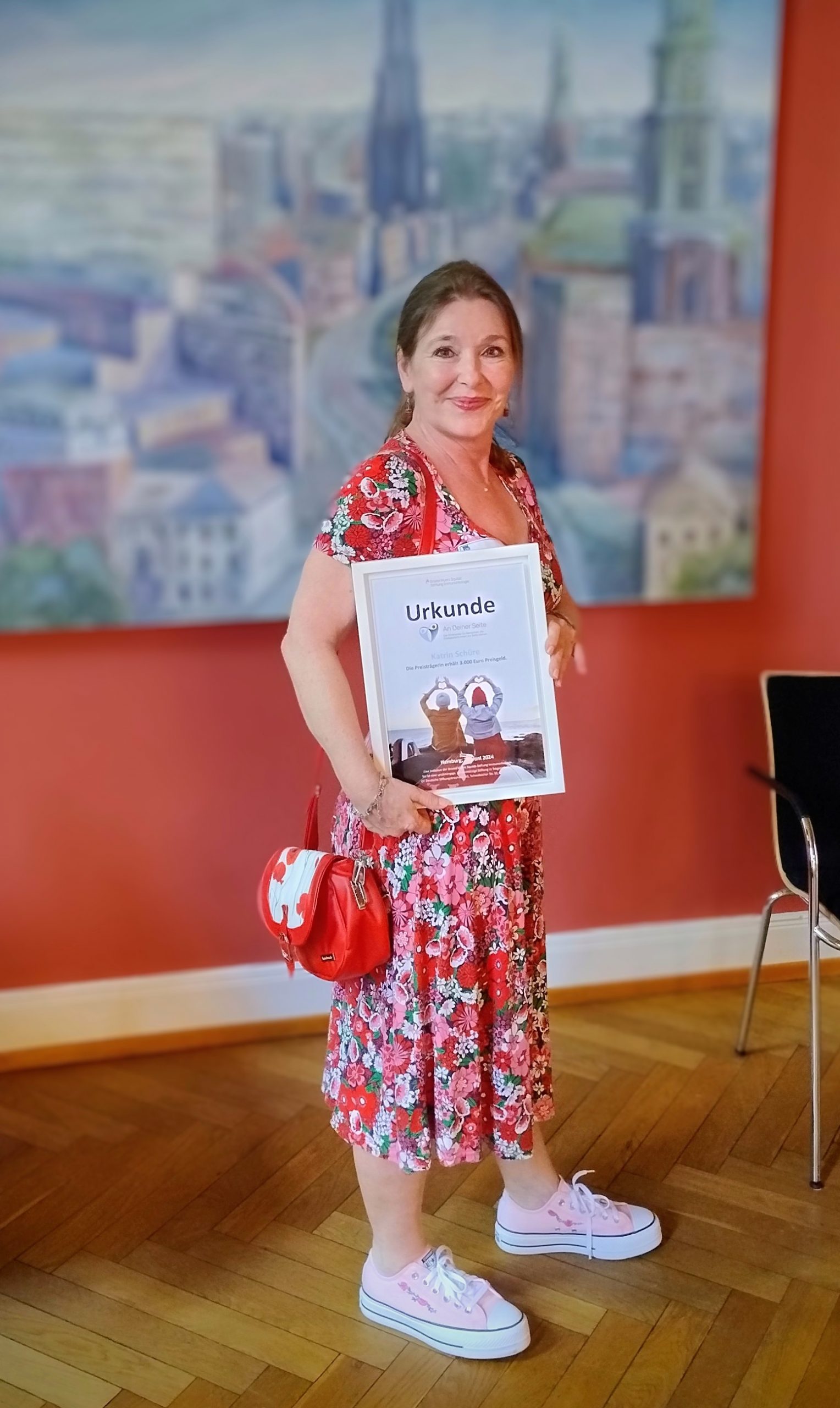 Die Bristol Myers Squibb-Stiftung Immunonkologie schreibt auf ihrer Homepage https://www.andeinerseite-preis.de: „Mit unserem Ehrenpreis „An Deiner Seite“ möchten wir Menschen auszeichnen, die Krebspatient:innen zur Seite stehen – als Mutmacher:innen, Kraftspender:innen, Alltagshelfer:innen, Zuhörer:innen, Begleiter:innen und mehr.“ Treffender könnte das Engagement von Katrin in der von Ihr 2018 gegründeten Facebookgruppe „Leben mit triple negativem Brustkrebs“ nicht beschreiben. Offensichtlich empfinden das die Mitglieder dieser Gruppe ebenso und haben Katrin für diesen Preis vorgeschlagen. Mit Erfolg.